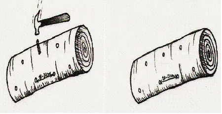 Skica 1: Inokulacija debla z micelijem na lesenih čepkih