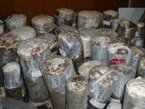 Debla z micelijem (inokulirana debla) postavimo na senčno mesto, kjer jih moči dež. Paziti pa moramo, da se voda ne nabira v zarezah napolnjenih z micelijem, saj lahko le-ta zgnije. Če opazimo, da se pod folijo nabira voda le to rahlo naluknjamo. Pomembno je da se debla ne izsušijo, obenem pa ne smejo biti namočena (izogibamo se mest, kjer se zadržuje voda in piha močan veter). Na mestih kjer zračna vlaga izredno niha zaradi sončne pripeke, vetra in dežja, začne lubje hitreje odstopati z debel, kar omogoči dostop drugim organizmom do lesa (Slika 11) in zmanjša pridelek gob.