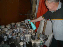 Za fazo preraščanja so najprimernejše vlažne kleti (nad 10oC) ali prostori, kjer je manjše nihanje temperatur in vlažnosti kot na prostem (Slika 12, Slika 13). V takih prostorih je omogočeno preraščanje lesa tudi preko zime. Če se po deblih pojavi plesen, je vlaga previsoka. V takem primeru je priporočljivo povečanje zračnosti, ali povišanje temperature v prostoru. Če je prostor presuh, debla poškropimo z vodo (Slika 14).